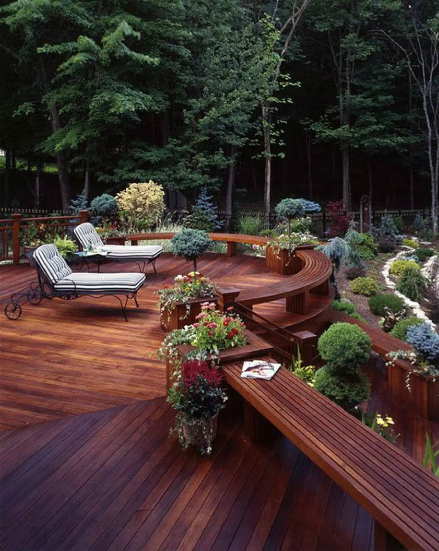 木平台是最常见的室外场地类型之一,木材的特性自然温润,更加“平易近人”,能够营造出亲切而舒适的环境,所以在庭院设计中常常会用到。