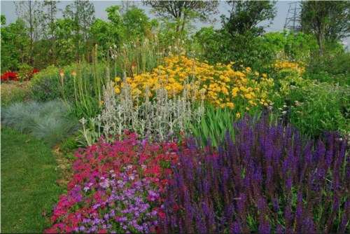 多年生花卉,虽不要求花期一致,但要考虑到同一季节中各种花卉的色彩,株高,形态,株形及数量的协调与对比。整体构图必须自然严谨,还要注意一年中的季相变化。要将多年生花卉植物井然有序的布置在整个花境中,避免开花植物间遮挡堆积现象。