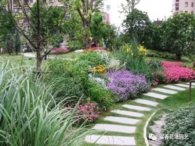 顾名思义就是根据地形,模仿自然界中的自然形态进行设计,设计者应根据现场地形充分考虑到植物的形态、株高、花期、叶色等因素。住宅小区、公园绿地、庭院花园等往往都是人们休憩休闲的场所,更注重身心的放松,所以路缘花境也比较适合采取师法自然的设计形式。师法自然的路缘花境能让人们随时亲近自然,享受自然,回归自然。