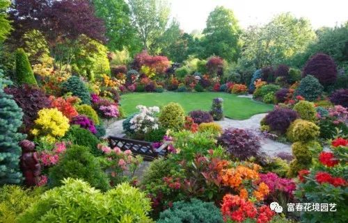 最后是色彩搭配,应先根据地理位置、当地的文化背景以及环境特点确定主色调,再搭配其他色彩。色彩可通过植物的花色、叶色或果实来表现,注重所选植物的色彩与周围环境相协调,不能盲目强调植物种类丰富,以免色彩杂乱无序,而破坏整体观赏效果。