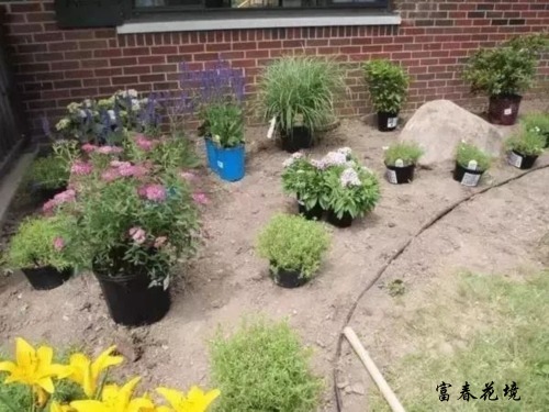 买回植物后,不要急着挖坑定值。先按照设计的草图,将植物摆放到位,再观察效果是不是符合预期,如果不符合,可以随时做出调整,以达到最佳观赏效果。