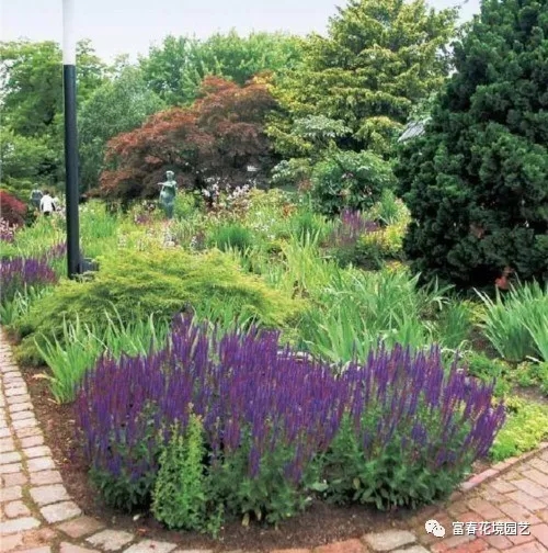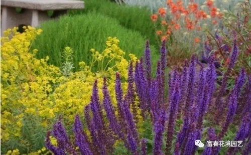 紫色可以用来在花园里帮助创造一个理想的情绪——浪漫鼓舞人心的和平。传统色彩理论紫色,高贵神秘的颜色,略带种忧郁的色彩,是种让人不忍忘记的颜色,代表权威、声望、深刻和精神,表示知识,自我尊重,灵性,尊严和财富。在景观中,它促进了内心的平静和自我价值的感觉。