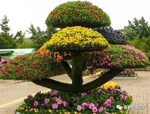 立体花坛-组合立体花坛可增加城市绿化面积,在有限的空间创造更多绿色其由大小或造型不同的多个花坛组合而成,形成一个比较大的景点,表达一个主题。这类立体花坛通常具有视觉宽阔、景观丰富多彩的艺术效果,植物一般以草花为主。