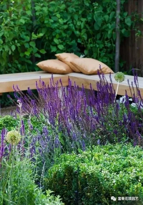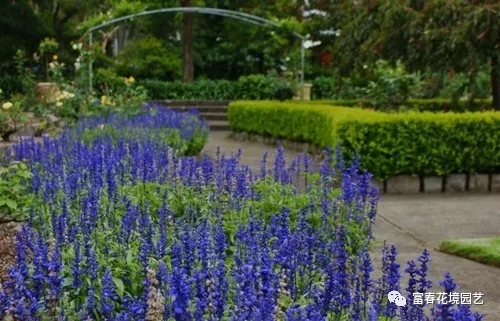 蓝色系,在生机盎然的色调里永远都保持着纯净的诗意,每次相遇都宛若初见。所以,与它相关的花境也渗透着它带来的文化内涵和设计语言。色彩的融合,景观的举重若轻,蓝色系植物的画龙点睛,线条的行云流水,组合出整体的视觉美感,令空间的每一个元素都在宁静与纯净之间自由徜徉。浪漫诗意的淡蓝色调景观,真是美仑美奂!