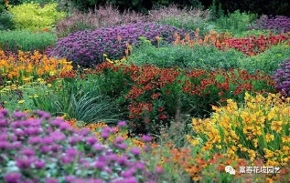 “互惠共生”即两种或多种花境植物生长在一起,可以相互吸收对方养分,达到双方共赢的目的,例如,有些植物的分泌物可以为其他植物提供养料,促进其发育,在设计营造花境时要充分考虑,并加以有效利用。但需要注意,有些花境植物不适合种植在一起,否则双方的生长都会受到抑制。