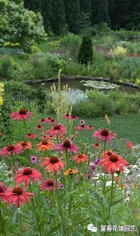 在花境设计营造时要遵循“天人合一”的设计理念,坚持人与自然和谐相处的设计原则,要最大程度上满足人们的观赏需求,可以利用原有的设施和建筑,同时还要考虑到观赏需求。