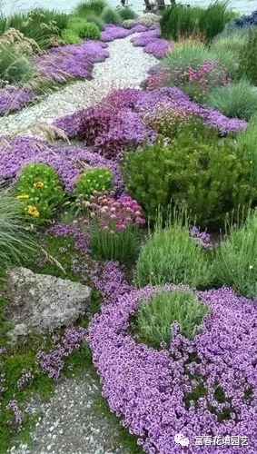 白草、垂盆草等景天类宿根花卉,势状石竹、垫状福禄考、紫露草等宿根花卉,都可以用来进行园路镶边,有增加园路景观的作用,还兼有保护路基,防止水土流失等作用。