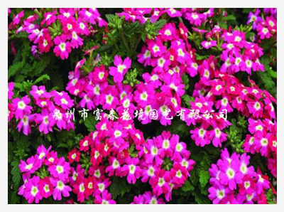为多年生草本植物,茎四棱、横展、匍匐状,低矮粗壮,丛生而铺覆地面,全株具灰色柔毛,叶对生有短柄,长圆形、卵圆形或披针状三角形,边缘具缺刻状粗齿或整齐的圆钝锯齿,叶基部常有裂刻,穗状花序顶生,多数小花密集排列呈伞房状。花萼细长筒状,花冠漏斗状,花色多,有白、粉红、深红、紫、蓝等不同颜色,略具芬芳。花期长,4月至霜降前开花陆续不断。
