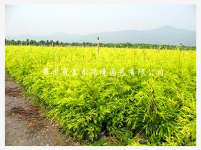 常绿热带速生乔灌木,深根性树种,主干直立,是优良的彩叶树种之一,植株耐修剪,可进行各种造型,枝条密集且细长柔软,层层向上扩展,树形十分优美。叶片金黄色或鹅黄色,密集分布于锥形树冠,可产生强烈的视觉冲击。花乳白色,顶生头状花序或短穗状花序,于夏末盛开。具极高观赏价值,有金黄、芳香、新奇等特点。