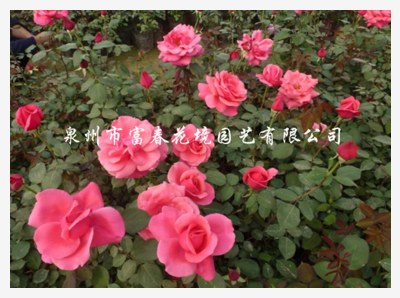 花粉红色,高芯翘角杯状型,蕾卵型,单朵着生,花径12cm,花瓣35-40枚,果味香,直立生长,植条绿色,刺小、密,叶绿色革质有光泽,叶脉明显,易嫁接。