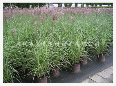 多年生草本,具根状茎,丛生状,暖季型。茎高1.2m。株高120CM-150CM,开展度与株高相同。叶片呈拱形向地面弯曲,最后呈喷泉状,叶片浅绿色,有奶白色条纹,条纹与叶片等长。圆锥花序顶生,花序深粉色,花序高于植株 30~50 厘米,花期 9~10 月。