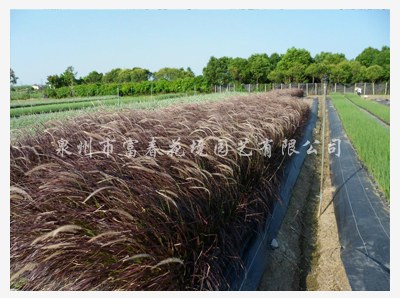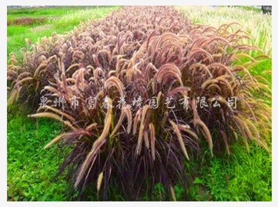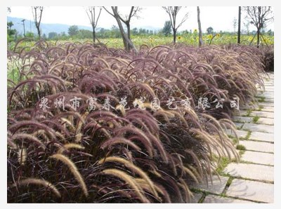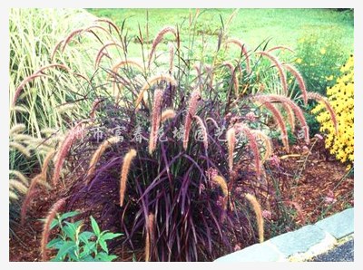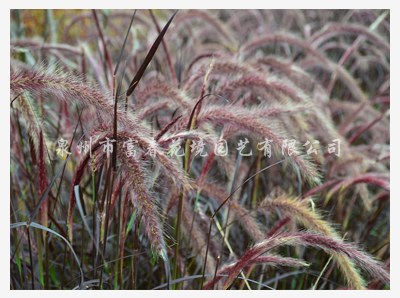 叶片全年紫红色,质感细腻,柔软,狭长园艺栽培变种,株型柔美。穗状花序密生,紫红色,狭长条状,长5-25厘米,宽1.5-3.5厘米,主轴密生柔毛,刚毛粗糙,紫色,小穗通常单生,偶有双生,花序观赏特征能保持至晚秋或初冬。花茎高出叶片顶端,外展下垂,呈喷泉状。须根较粗壮,秆直立,丛生,高达30-120厘米,在花序下常密被柔毛。花果期夏秋季。