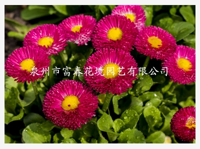 4、雏菊作为街头绿地的地被花卉,具有较强的魅力,可与金盏菊、三色堇、杜鹃、红叶小檗等配植。