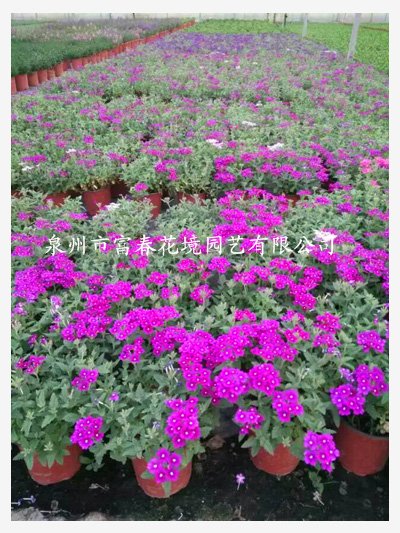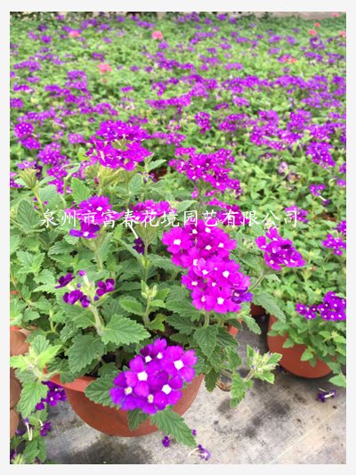 为多年生草本植物,茎四棱、横展、匍匐状,低矮粗壮,丛生而铺覆地面,全株具灰色柔毛,叶对生有短柄,长圆形、卵圆形或披针状三角形,边缘具缺刻状粗齿或整齐的圆钝锯齿,叶基部常有裂刻,穗状花序顶生,多数小花密集排列呈伞房状。花萼细长筒状,花冠漏斗状,花深紫、蓝等不同颜色,略具芬芳。花期长,4月至霜降前开花陆续不断。