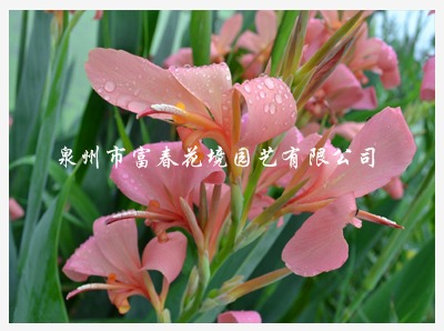 水生美人蕉为多年生大型草本植物,株高12 m;叶片长披针形,蓝绿色;总状花 序顶生,多花;雄蕊瓣化,花径大约10 cm,花呈粉红色;温带地区花期4 10月份,热带和亚热带地区全年开花;地上部分在温带地区的冬季枯死,根状茎进入休眠期,热带和亚热带地区终年常绿。水生美人蕉与美人蕉属下其它种在形态和生物学特性上的最大区别是根状茎细小,节间延长,耐水淹,在20 cm深的水中能正常生长。
