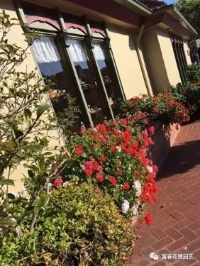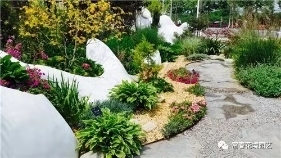 在建筑物旁的花境,主要起烘托建筑以及美化建筑基础的作用,软化建筑的硬线条。花境体量与团块体量都应较小。适宜应用以宿根花卉为主,搭配少量花灌木的混合花境。