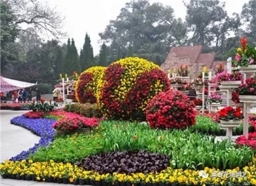 节日庆典以及花展时,这类场地中布置花境也一般以暖色调为主,并且为了快速形成观赏效果,在节日或花展时表现花卉最灿烂的景观,对花卉的时令性要求较高,所以一般多以一二年生花卉为主,适当配以花灌木、彩叶灌木及宿根花卉,形成以一二年生花卉为主的混合花境。